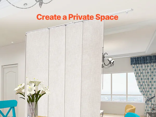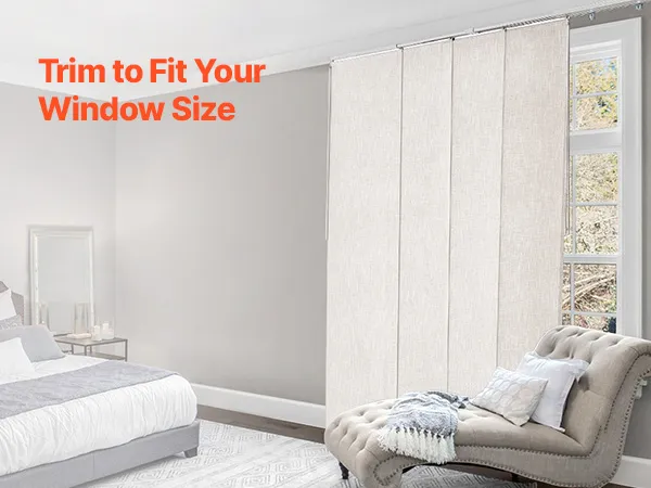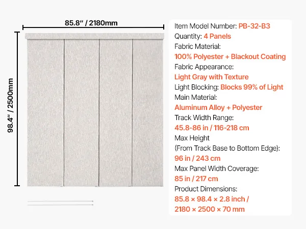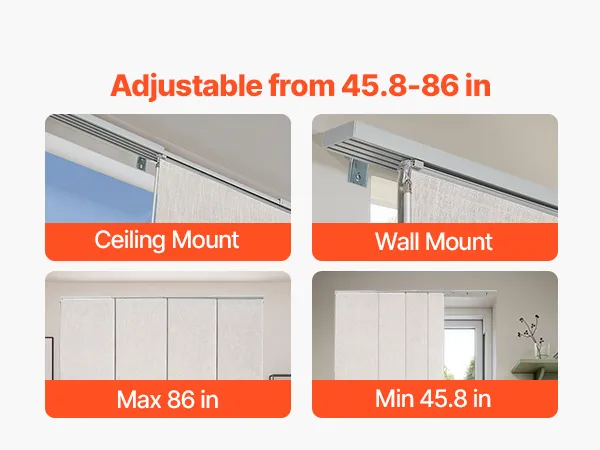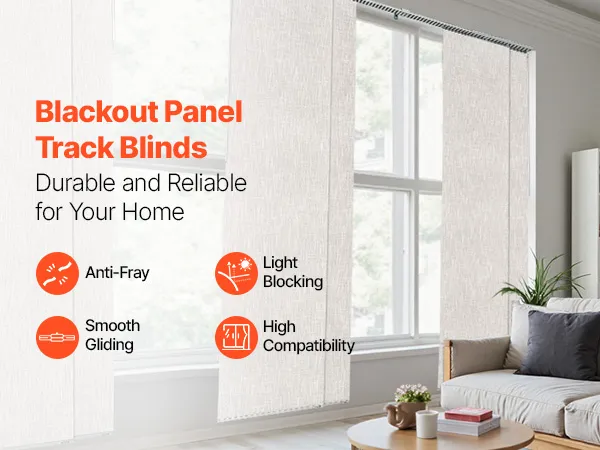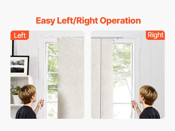 Tejido de poliéster de alta calidad: Fabricadas con poliéster de primera calidad, nuestras persianas con rieles de panel ofrecen una resistencia y durabilidad excepcionales. Resisten el deshilachado y los desgarros, se mantienen frescas y están diseñadas para durar: una opción confiable para su hogar
