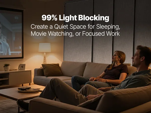Bloqueo de luz del 99%: Nuestras persianas corredizas cuentan con un revestimiento opaco que bloquea hasta el 99% de la luz entrante, creando un ambiente oscuro. Ideales para un sueño tranquilo, noches de cine o para concentrarse en el trabajo, ya que brindan privacidad y un control preciso de la luz
