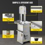 La sierra de cinta eléctrica de mesa viene con una mesa de trabajo extensa, tamaño de 23,6 x 18,3, con un grosor ajustable de 0 a 8,3 pulgadas, adecuada para trozos de carne grandes y pequeños. El tubo de alimentación deslizante está diseñado para ofrecer una comodidad que ahorra trabajo, lo que hace que el movimiento sea rápido, simple y estable. Además, la ligera losa de empuje con mango es fácil de aplicar fuerza.