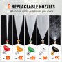 La pistola hidrolimpiadora VEVOR tiene cinco boquillas diferentes. Las boquillas disponibles son 0°, 15°, 25°, 40° y 65°. Cada una ofrece un patrón de rociado y una presión diferentes. Esto hace que la pistola sea versátil para diversas tareas de limpieza. La boquilla de 0° puede tratar manchas difíciles con un rociado directo. Las boquillas de 15° y 25° son perfectas para la limpieza general de diversas superficies.