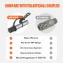 VEVOR Grease Gun Coupling, 2-Pack, 10,000 PSI High Pressure, 3-Jaw Locking, Quick-Release Grease Gun Tip with Hose/Zerk Fitting Cleaner/Leak-Proof Cap, Compatible with All Grease Guns with 1/8-Inch NPT Connections