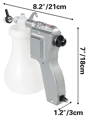 El tanque de agua de gran capacidad puede contener 1,2L de solución de limpieza o solvente. La impresión de pantalla de pistola puntual presenta un gancho para colgar para un fácil almacenamiento.