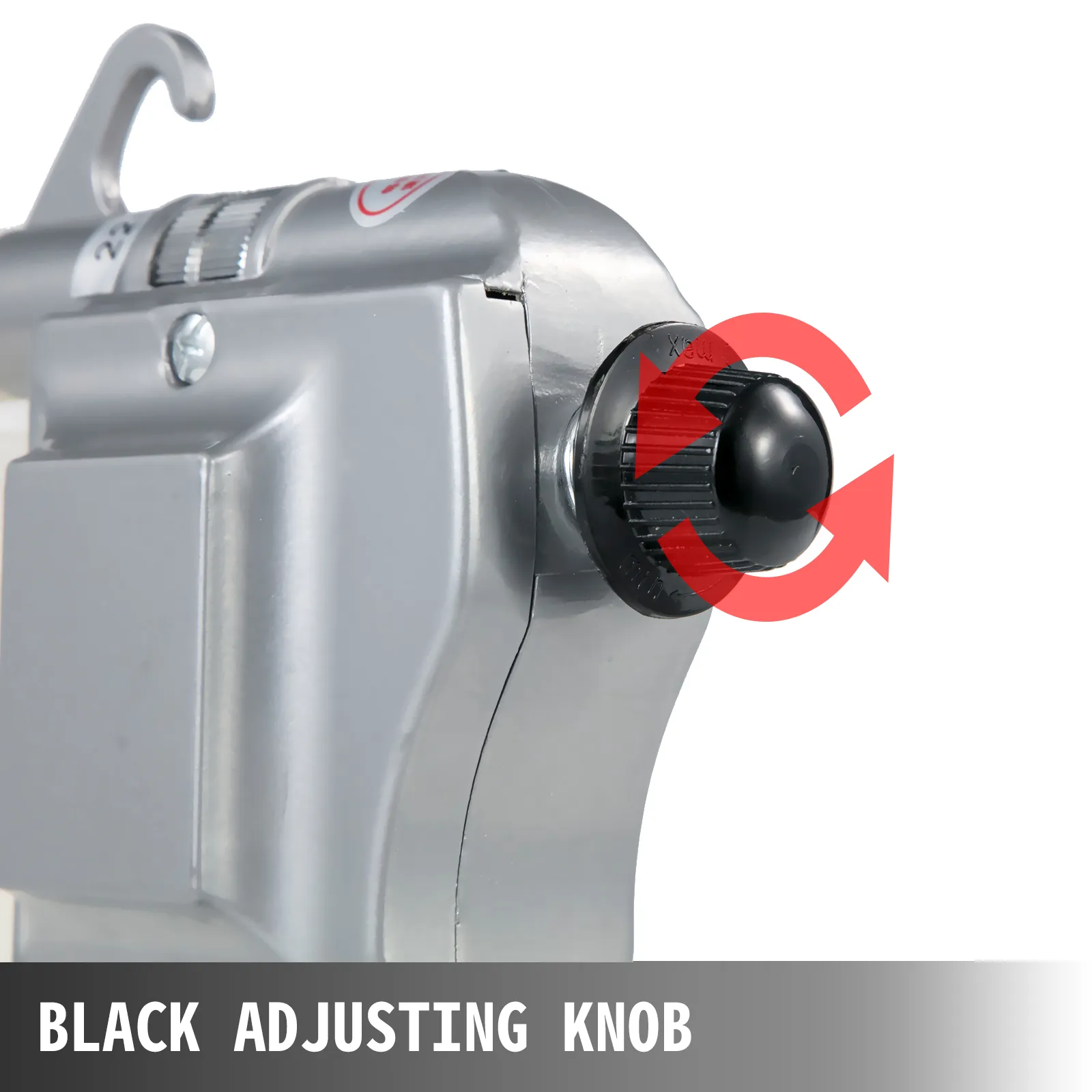 Hay una perilla de ajuste negra en la parte posterior de la pistola de limpieza de manchas. Gire en sentido horario para reducir la fuerza de disparo y en sentido antihorario para aumentar la potencia de disparo.