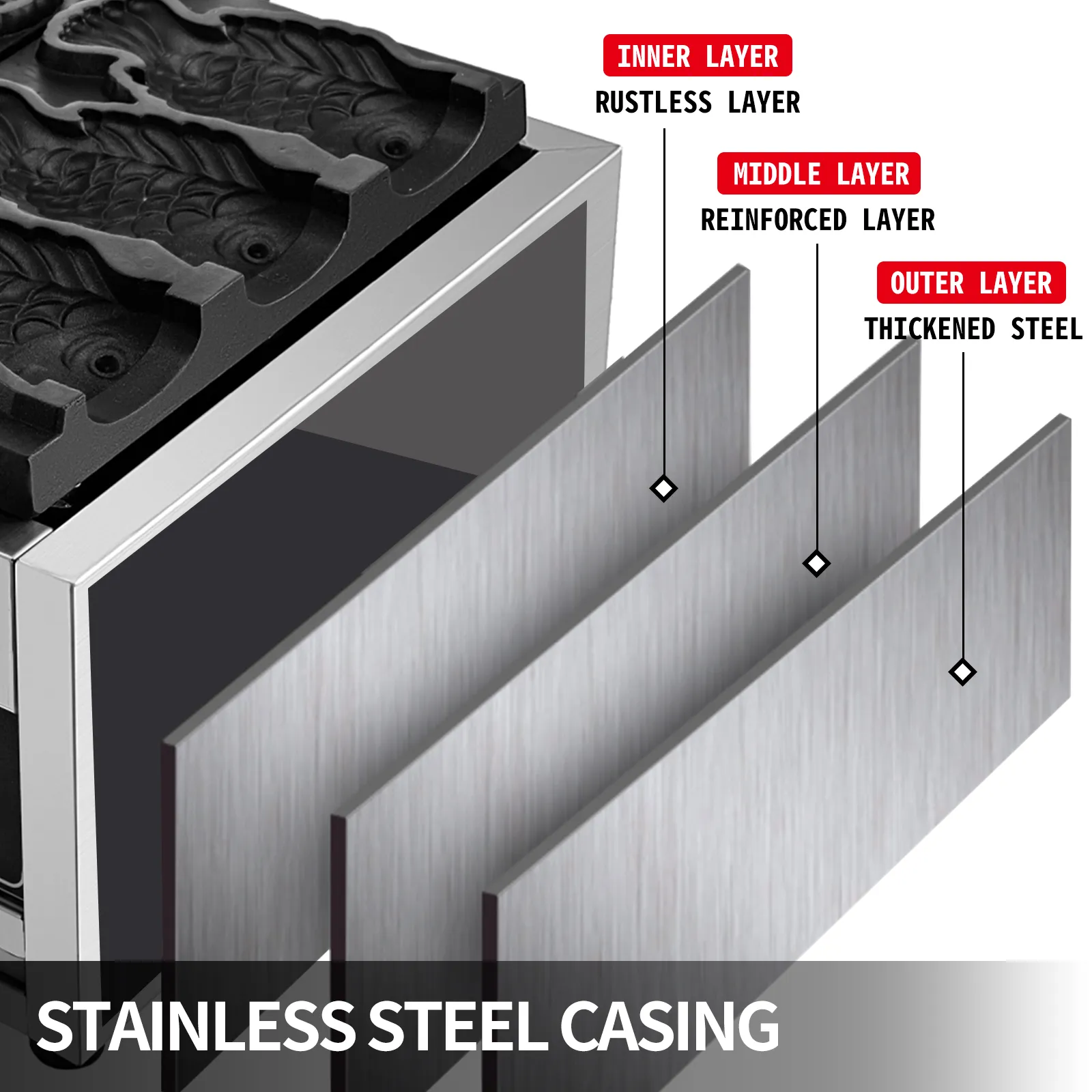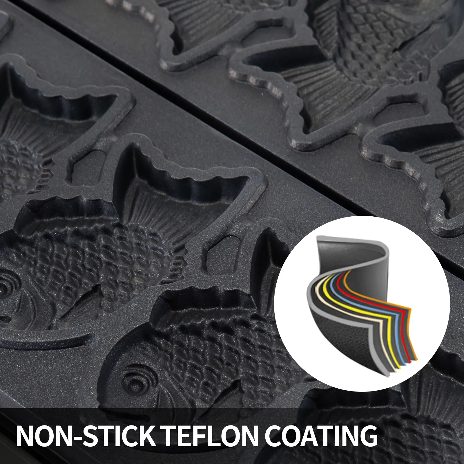 La placa calefactora de aluminio fundido con revestimiento antiadherente de teflón evita eficazmente que el Taiyaki se pegue en la superficie.