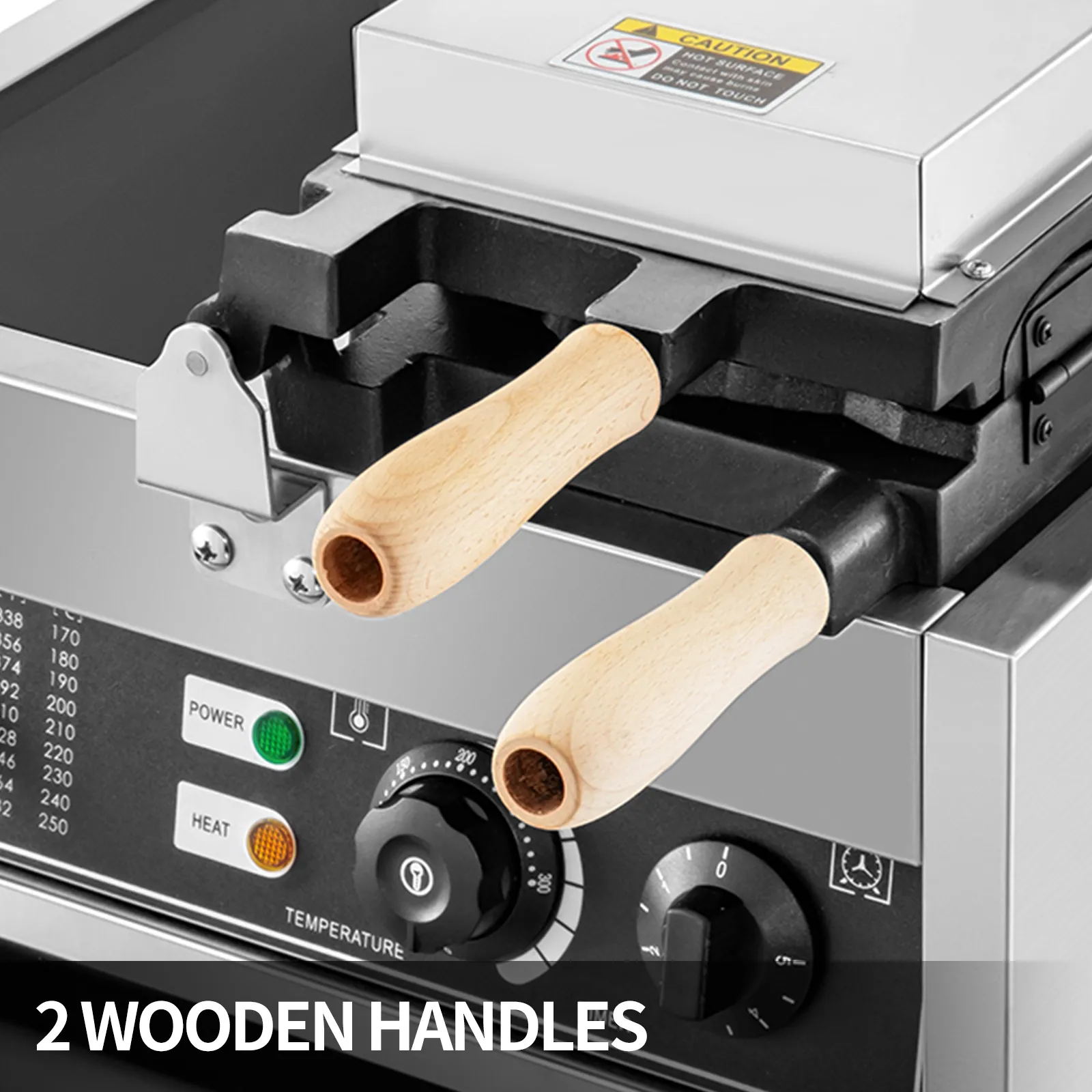 Dos mangos de madera colocados en el lado de las placas calefactoras son resistentes al calor, evitando que las manos se quemen durante la operación.