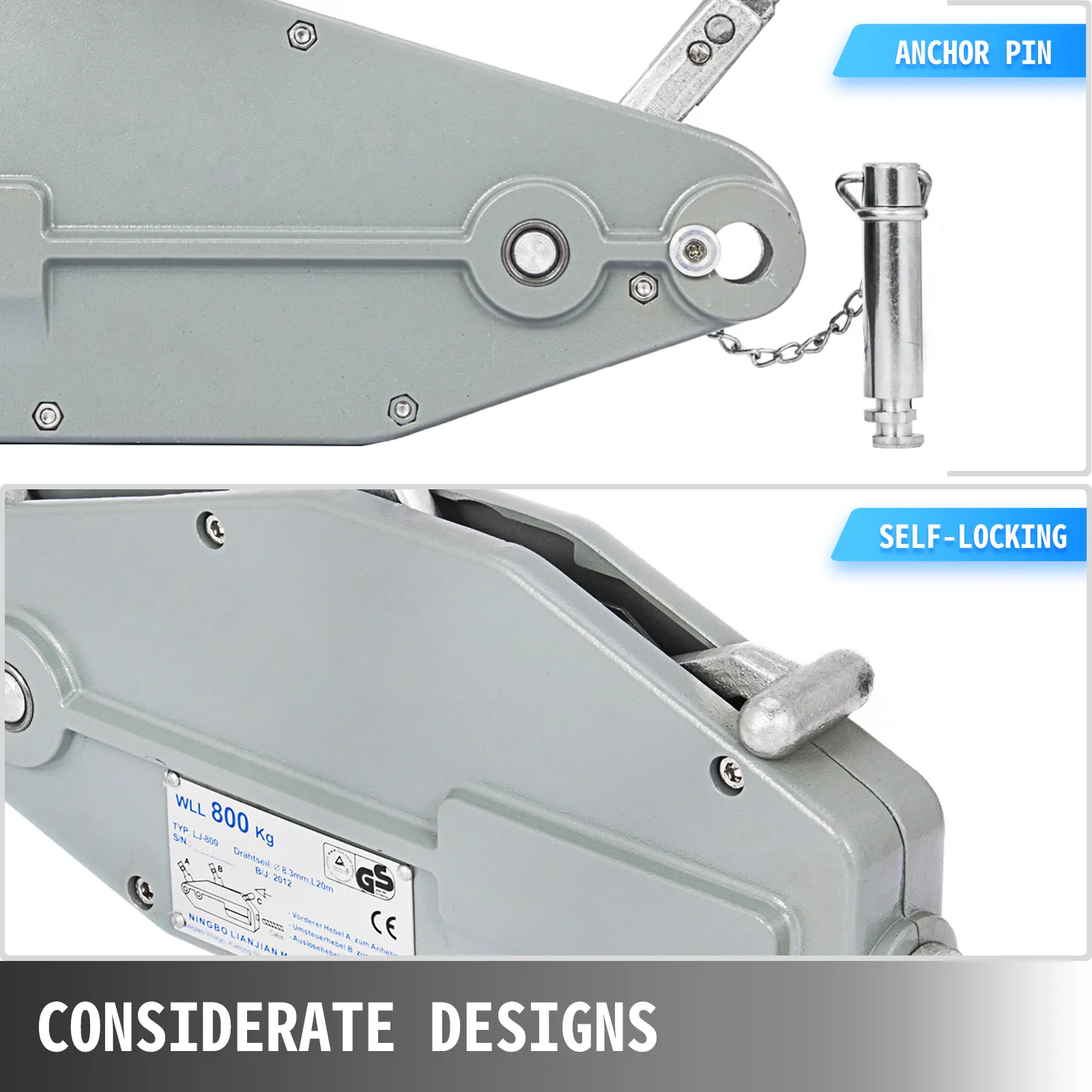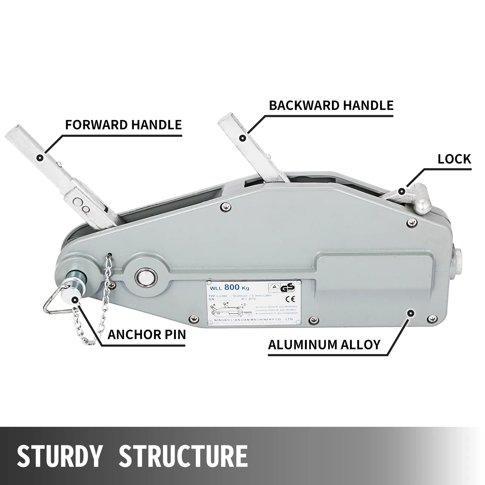 Capacidad Nominal: 1760 libras. Se utiliza para mover manualmente árboles, tocones, vehículos u otras cargas que deben moverse.