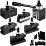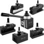 El juego de postes de herramientas de cambio rápido está cementado y recubierto con un acabado negro para una larga vida útil y precisión repetible. Tener este juego montado en su torno minimiza el tiempo de inactividad en busca de los accesorios que necesita y le permite realizar trabajos de producción. El kit está equipado con un mecanismo de cuña y cinco portaherramientas, incluido un portaherramientas de torneado, un portaherramientas de moleteado / torneado, un portaherramientas dividido, un portaherramientas de barra de mandrilar y un portaherramientas de taladrado / torneado.