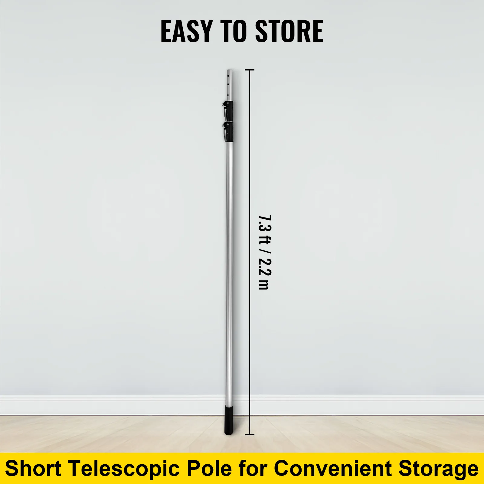 El palo telescópico se puede retraer a una longitud corta y guardar en la esquina. El tamaño retraído es pequeño, liviano, fácil de almacenar y transportar.