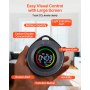 Este monitor de CO₂ cuenta con un sistema de retroiluminación tricolor: verde (400-700 ppm), amarillo (700-1500 ppm) y rojo (1500-5000 ppm), que proporciona información en tiempo real sobre la calidad del aire.