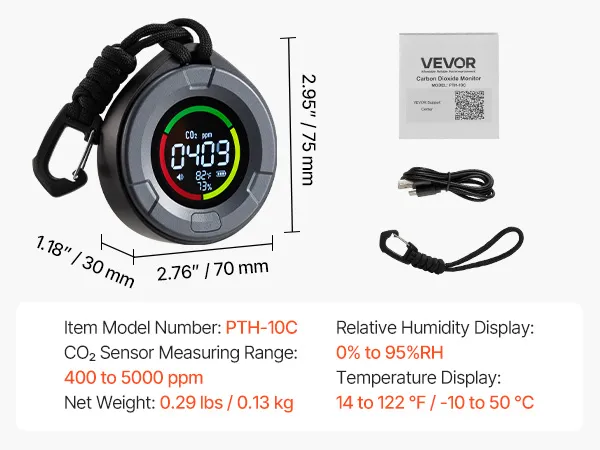 Este medidor de CO₂ pesa solo 0,13 kg y tiene un diseño compacto que cabe fácilmente en el bolsillo o el bolso. Ideal para aulas, oficinas e invernaderos, proporciona una monitorización fiable del CO₂ y es muy portátil y práctico para el uso diario.