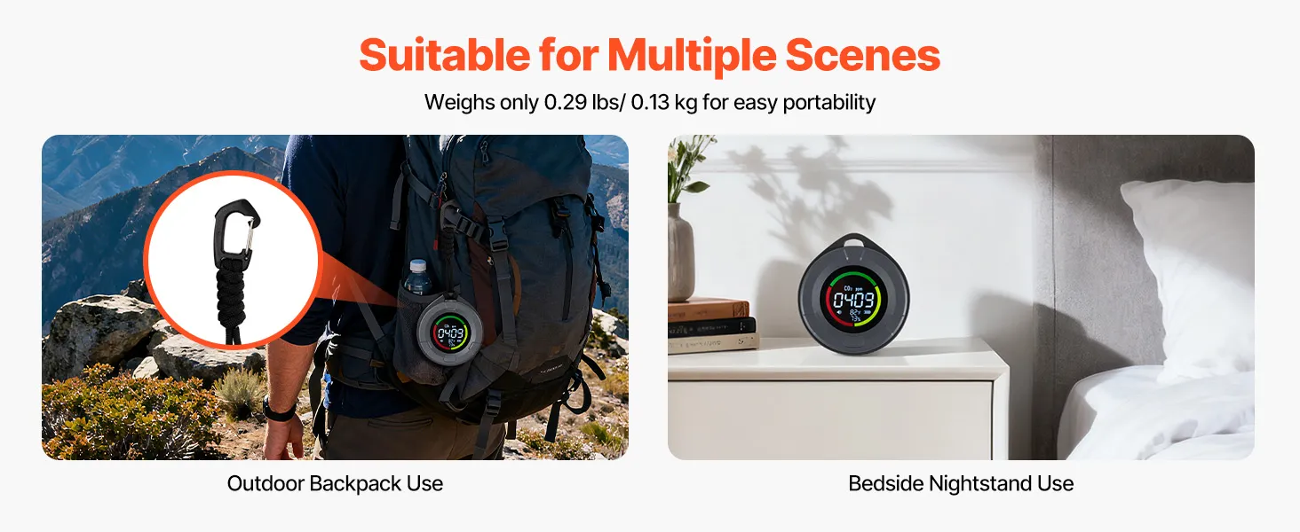 Diseño compacto y portátil: Nuestro monitor de calidad del aire es ligero y compacto, con un peso de tan solo 0,13 kg. Llévelo fácilmente en la mano, en un bolsillo o en un bolso, y controle al instante la calidad del aire en aulas, oficinas, invernaderos o laboratorios sin preocuparse por limitaciones de espacio o acceso a la corriente eléctrica