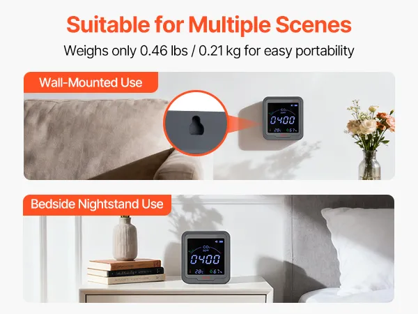 Diseño compacto y portátil: Nuestro monitor de calidad del aire es ligero y compacto, con un peso de tan solo 0,21 kg. Llévelo fácilmente en la mano, en un bolsillo o en un bolso, y controle al instante la calidad del aire en aulas, oficinas, invernaderos o laboratorios sin preocuparse por limitaciones de espacio o acceso a la corriente eléctrica