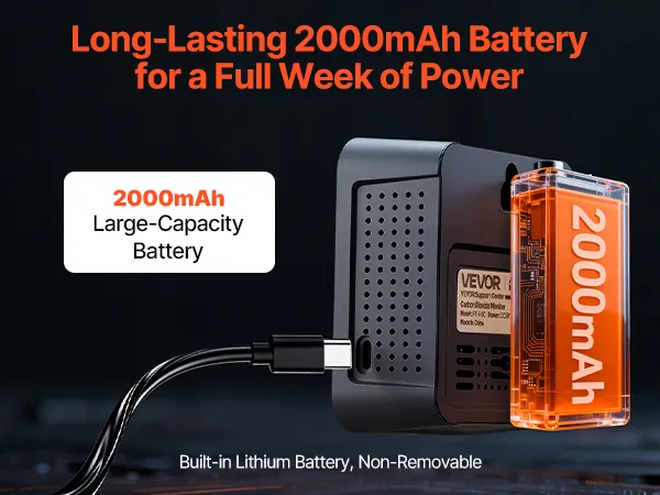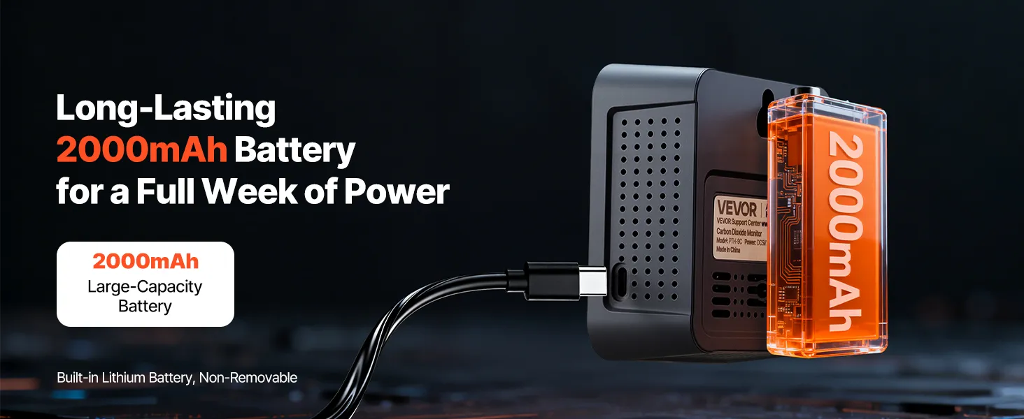 Diseñado para un uso prolongado, este sensor de CO₂ cuenta con una batería de 2000 mAh que proporciona entre 72 y 120 horas de funcionamiento continuo. Ideal para la monitorización portátil o en exteriores, garantiza lecturas fiables de CO₂ en aulas, oficinas, invernaderos y otros espacios.