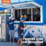 Easy to open: With an 85° opening angle and two hydraulic rods, the snack window opens effortlessly. This snack window allows you to conveniently serve food to your customers. The included sunshade protects against rain, sunlight, and theft.