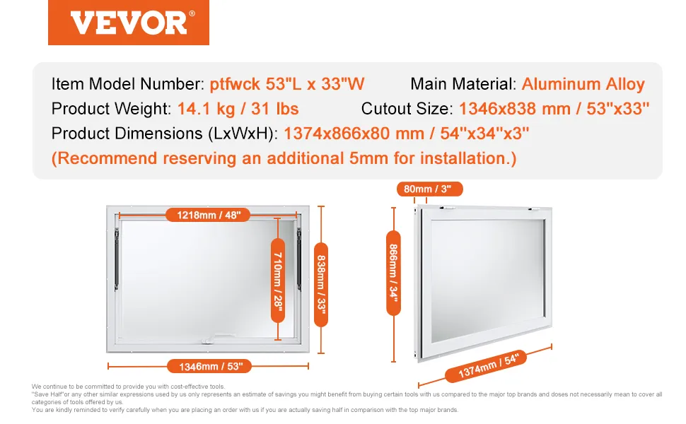VEVOR garantiza que su ventana de concesión llegue rápidamente y en excelentes condiciones. Ofrecen envíos rápidos, que a menudo llegan antes de lo esperado. Esta confiabilidad es esencial para las empresas que necesitan operar sin interrupciones. En el caso poco frecuente de que se produzcan daños durante el envío, el servicio de atención al cliente de VEVOR es receptivo y útil. Su trabajo ayuda a resolver cualquier problema rápidamente, lo que garantiza que pueda volver a trabajar sin demora. Su compromiso con la satisfacción del cliente significa que puede confiar en la calidad de su servicio y sus productos. La combinación de envío rápido y excelente atención al cliente hace que VEVOR sea la mejor opción para sus necesidades de ventanas.