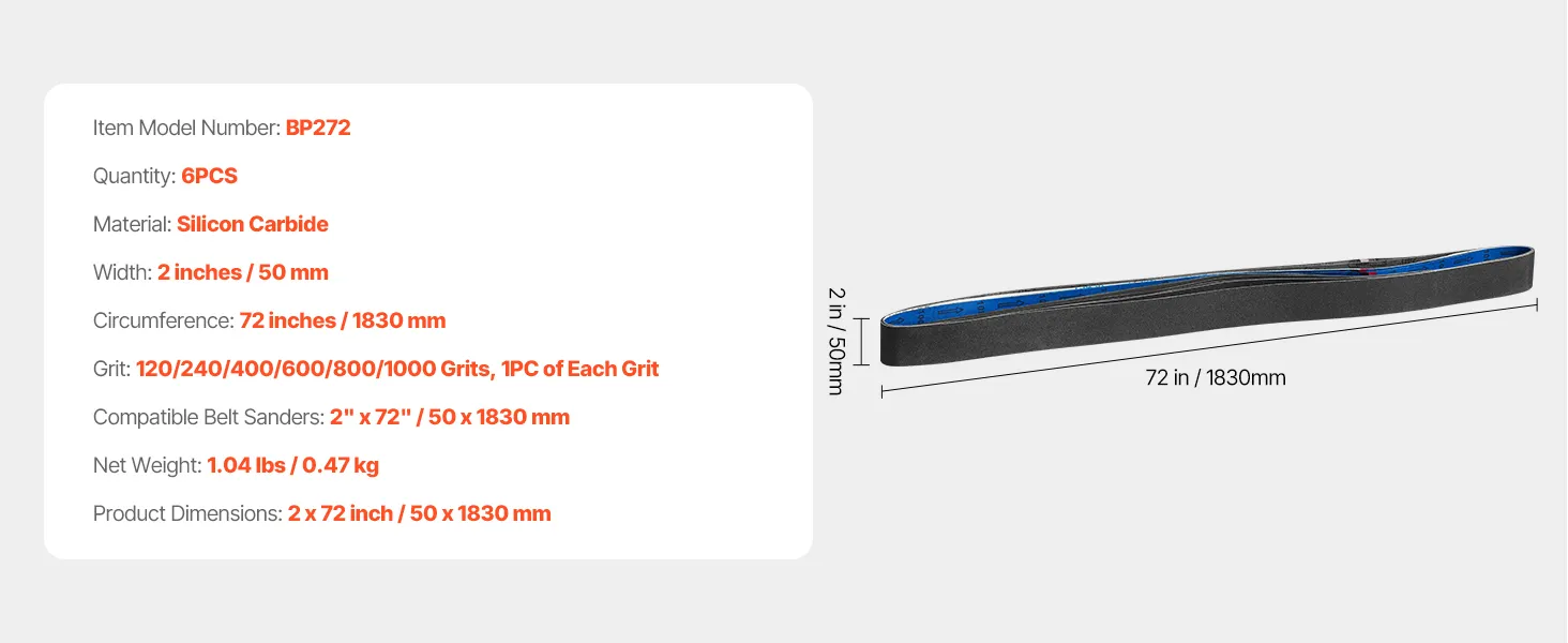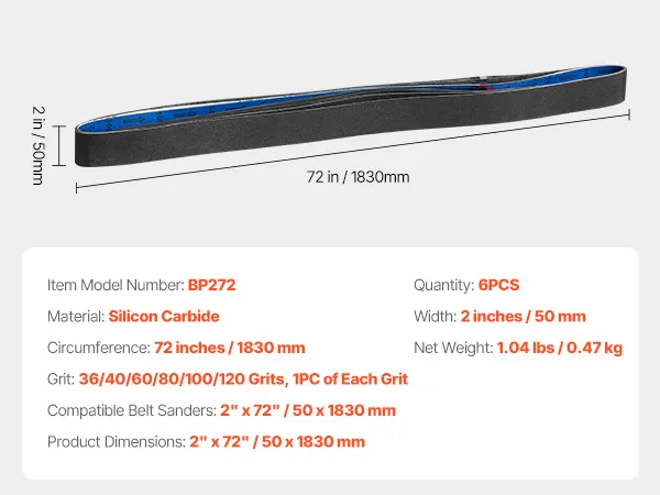 Carburo de silicio de alta dureza: Fabricadas con carburo de silicio de primera calidad, estas bandas de lijado de 50 x 1830 mm ofrecen excelente resistencia al desgaste, alta dureza y tenacidad, y un gran rendimiento de corte. Adecuadas para acero inoxidable, aleaciones, termoplásticos, materiales compuestos y más. Consiga un acabado impecable y liso con facilidad