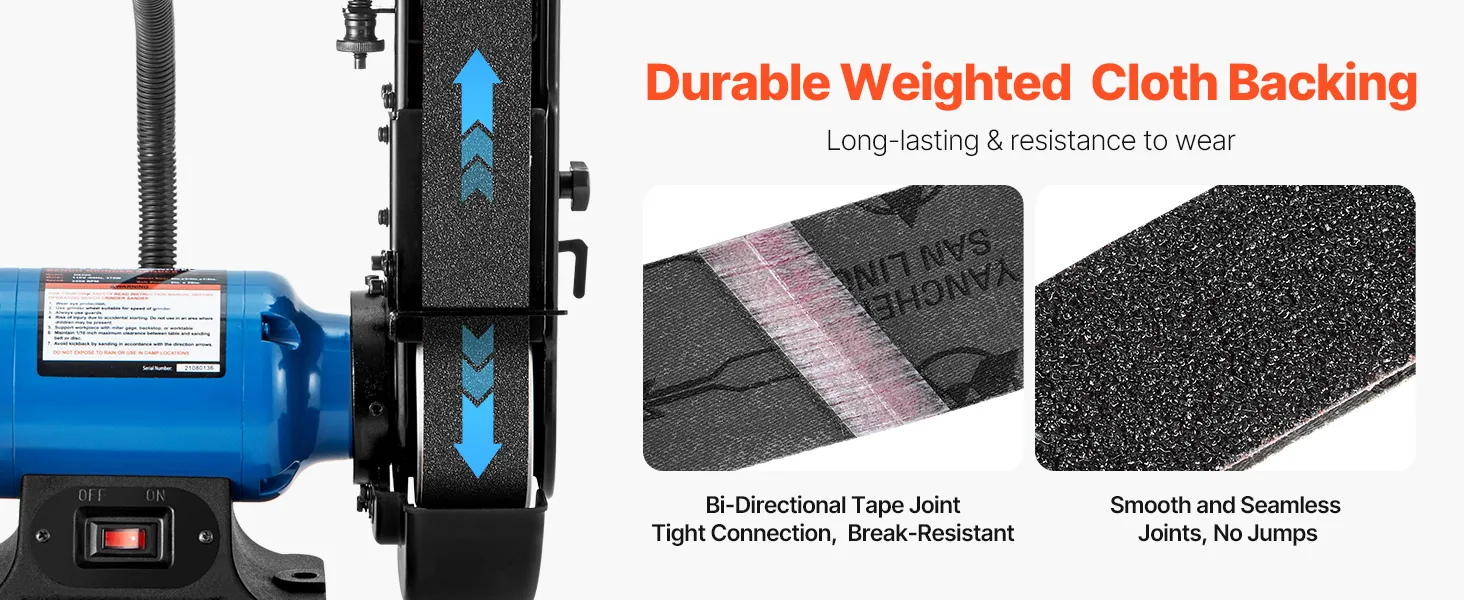 Conexión suave y firme: Con una unión de cinta bidireccional para una conexión firme y sin costuras, estas bandas de lijado para lijadora de banda evitan que salten durante el lijado a alta velocidad y son resistentes a la rotura bajo presión