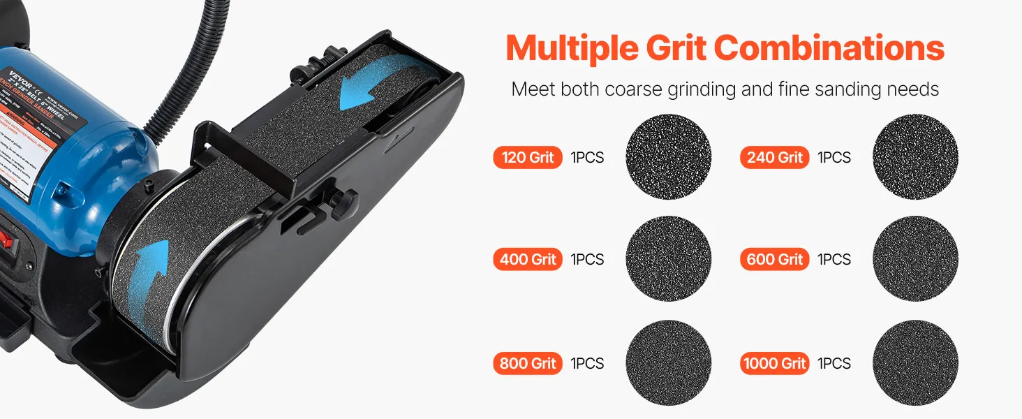 Variedad de granos para una mayor versatilidad: Este kit de banda de lijado incluye 6 bandas de lijado con 6 granos diferentes: cada una de grano 120, 240, 400, 600, 800, 1000, que satisfacen tanto las necesidades de pulido grueso como de lijado fino