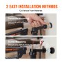 Elija entre montaje a presión o mediante hardware. El soporte a presión protege las paredes de los taladros y se puede montar y desmontar con facilidad. ¿Escaleras? Recomendamos la opción de hardware.