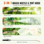 La boquilla de latón 3 en 1 está diseñada para durar y ofrece versatilidad, lo que permite pulverizar en línea recta, cono pequeño y cono grande. El brazo telescópico se ajusta de 76 a 102 cm, junto con una manguera de 6,1 m, lo que facilita diversas tareas.