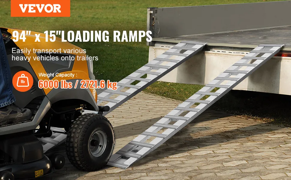 VEVOR Rampa de Carga de Aluminio 2 Piezas 240 x 38 cm Rampa de Acceso Capacidad de Carga de 2721,6 kg Ligera y Portátil para Motocicleta Todoterreno, Remolque, ATV, UTV, Tractor, Cortacésped
