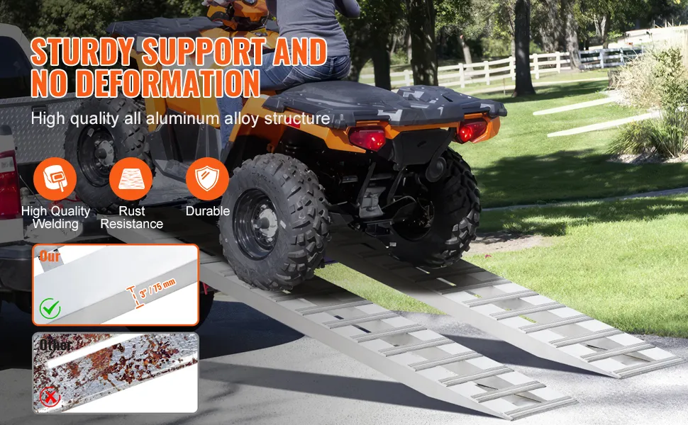 Fabricadas con una aleación de aluminio de primera calidad con vigas principales gruesas y barras transversales reforzadas, estas rampas de aluminio brindan confiabilidad duradera en cualquier entorno.