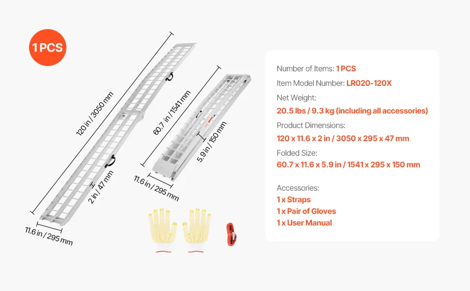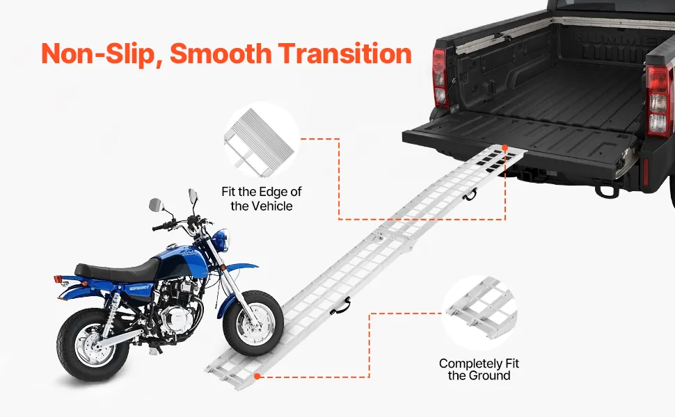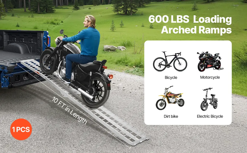 Capacidad de carga de 600 libras: Con una capacidad de carga de hasta 600 libras, esta rampa arqueada ofrece un equilibrio ideal entre resistencia y portabilidad. El diseño de rampa única es ideal para transportar motocicletas, scooters eléctricos, bicicletas y más