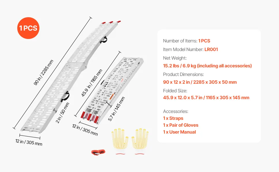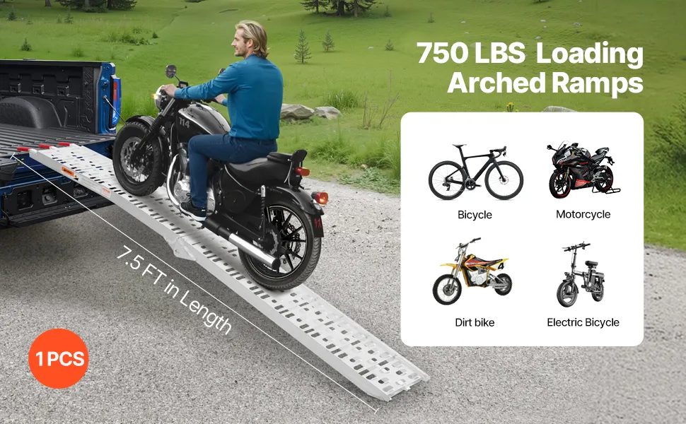 Capacidad de carga de 750 libras: Con una capacidad de carga de hasta 750 libras, esta rampa arqueada ofrece un equilibrio ideal entre resistencia y portabilidad. El diseño de rampa única es ideal para transportar motocicletas, scooters eléctricos, bicicletas y más
