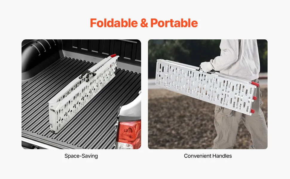 Equipada con un asa de transporte y un diseño plegable, la rampa se puede plegar de forma compacta cuando no está en uso, lo que hace que sea fácil de transportar, almacenar y ahorrar espacio mientras viaja.
