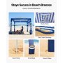 Resistencia al viento nivel 4-5: Gracias a su robusta estructura de acero, mástil principal atornillable, sacos de arena y estacas, esta sombrilla de fácil montaje se mantiene firme en la arena. Resiste el colapso y la volcadura, incluso con brisas marinas ligeras