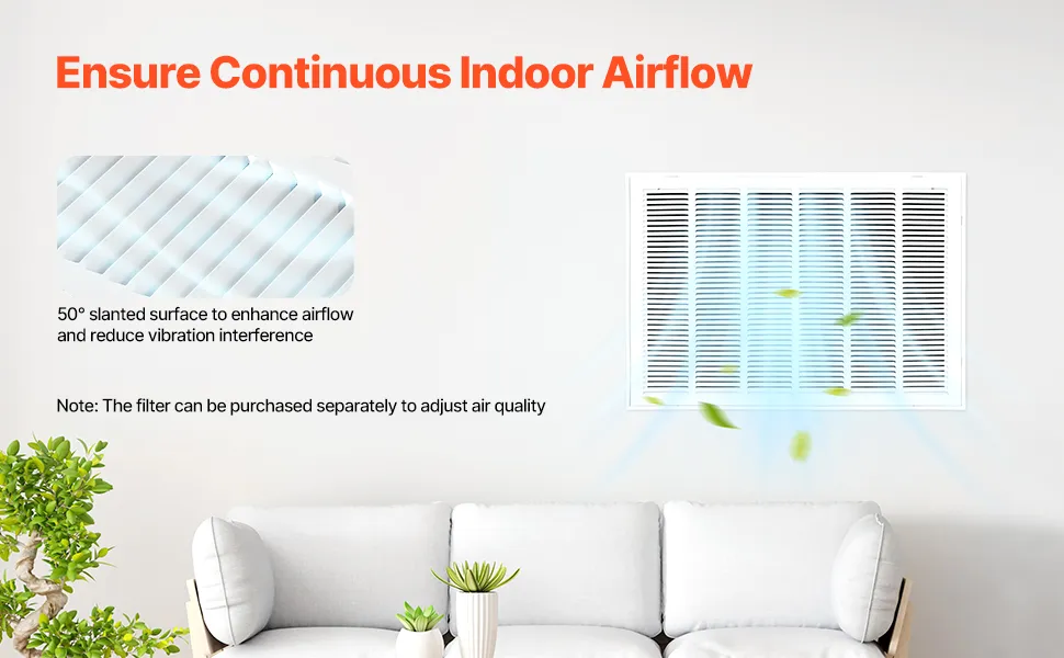 Flujo de aire eficiente: Disfrute de una experiencia de ventilación silenciosa y eficiente para su sistema de calefacción y refrigeración con este dispositivo(filtro no incluido). El diseño de aletas en ángulo maximiza el flujo de aire y garantiza un funcionamiento silencioso. Para un rendimiento óptimo, se recomienda limpiar o reemplazar las aspas con regularidad