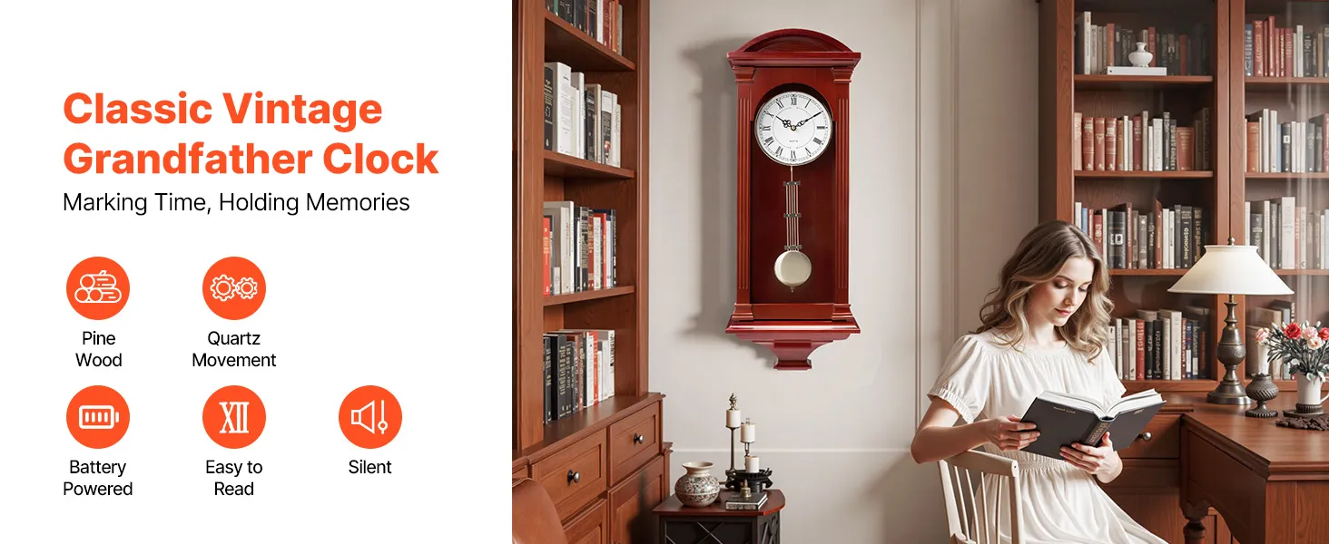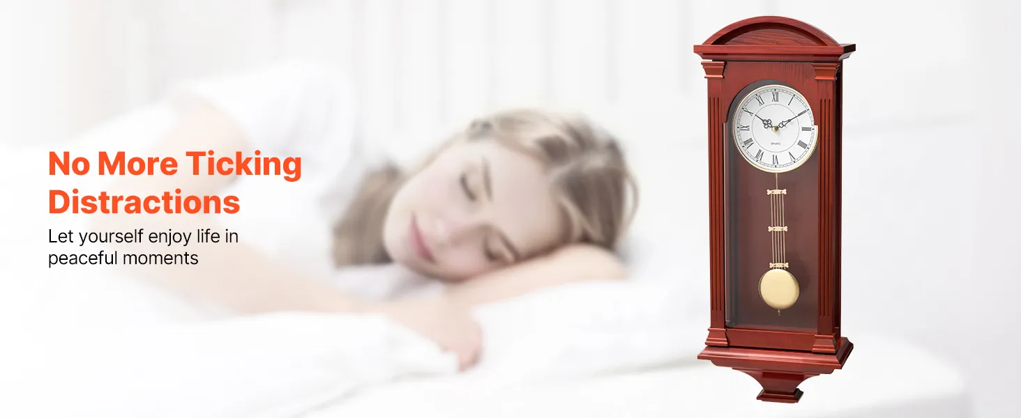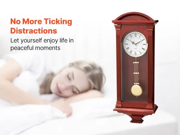 El reloj de pared de péndulo presenta un diseño silencioso que elimina el tictac para que disfrutes de un ambiente tranquilo. Ya sea para una noche tranquila en el dormitorio o para trabajar concentrado en el estudio, crea un ambiente sereno y confortable.