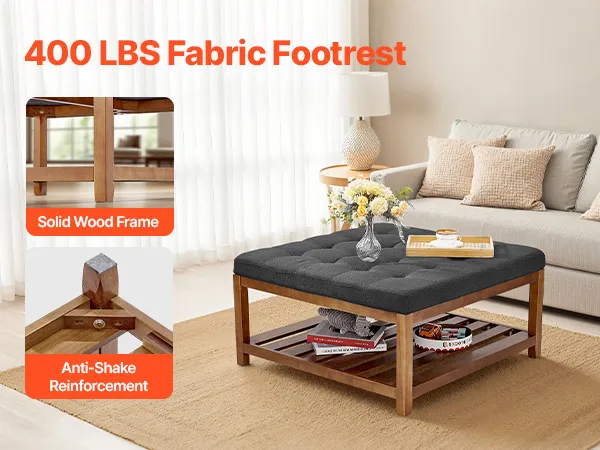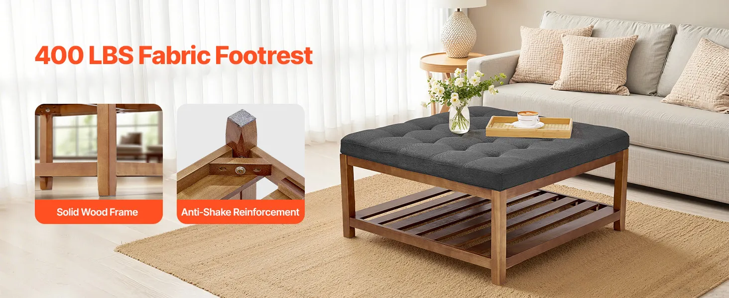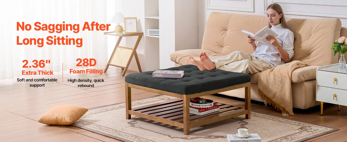 Estructura de madera maciza: Esta mesa de centro otomana con estructura de madera de pino soporta hasta 181,44 kg y se mantiene estable y duradera incluso con un uso prolongado. Ideal como reposapiés, asiento adicional o bandeja para la mesa de centro