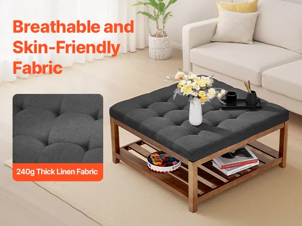 Tela de lino de alta calidad: Nuestra mesa de centro otomana grande está hecha de tela de lino transpirable y agradable para la piel, que se mantiene fresca y cómoda. Es duradera, resistente al desgarro y a la decoloración, ideal para usarla todo el año