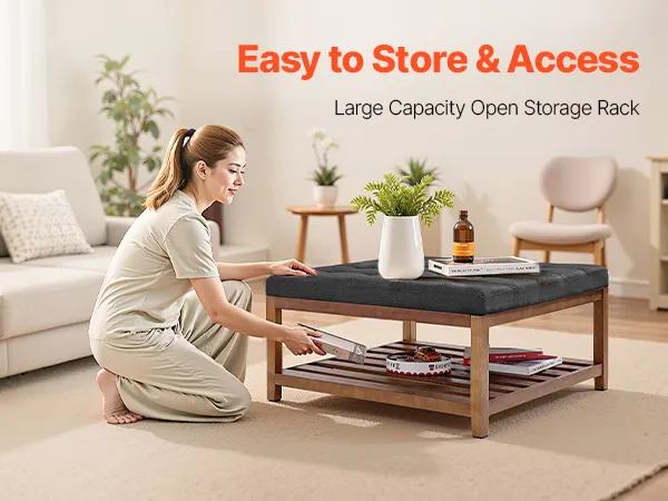 Versátil: Esta mesa de centro otomana tapizada se integra a la perfección en cualquier habitación (sala de estar, dormitorio, despacho o recibidor) y ofrece comodidad y estilo. Sirve tanto como práctico espacio de almacenamiento como elegante pieza decorativa