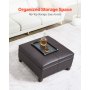 VEVOR 71 cm Square Leather Ottoman with Storage, Upholstered Tufted Button Coffee Table Ottoman with Flip-Top Design, PU Leather High-Density Sponge for Living Room, Dorm, Bedroom, Dark Brown