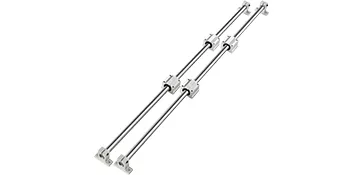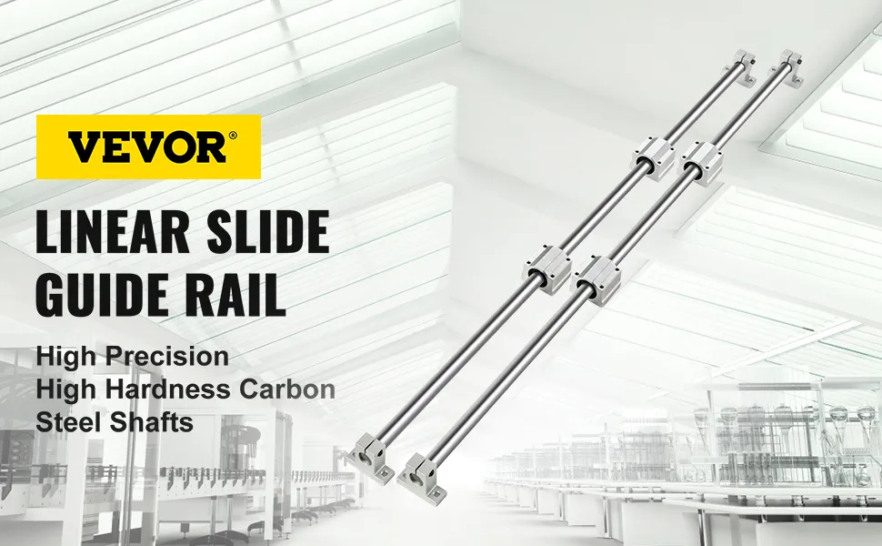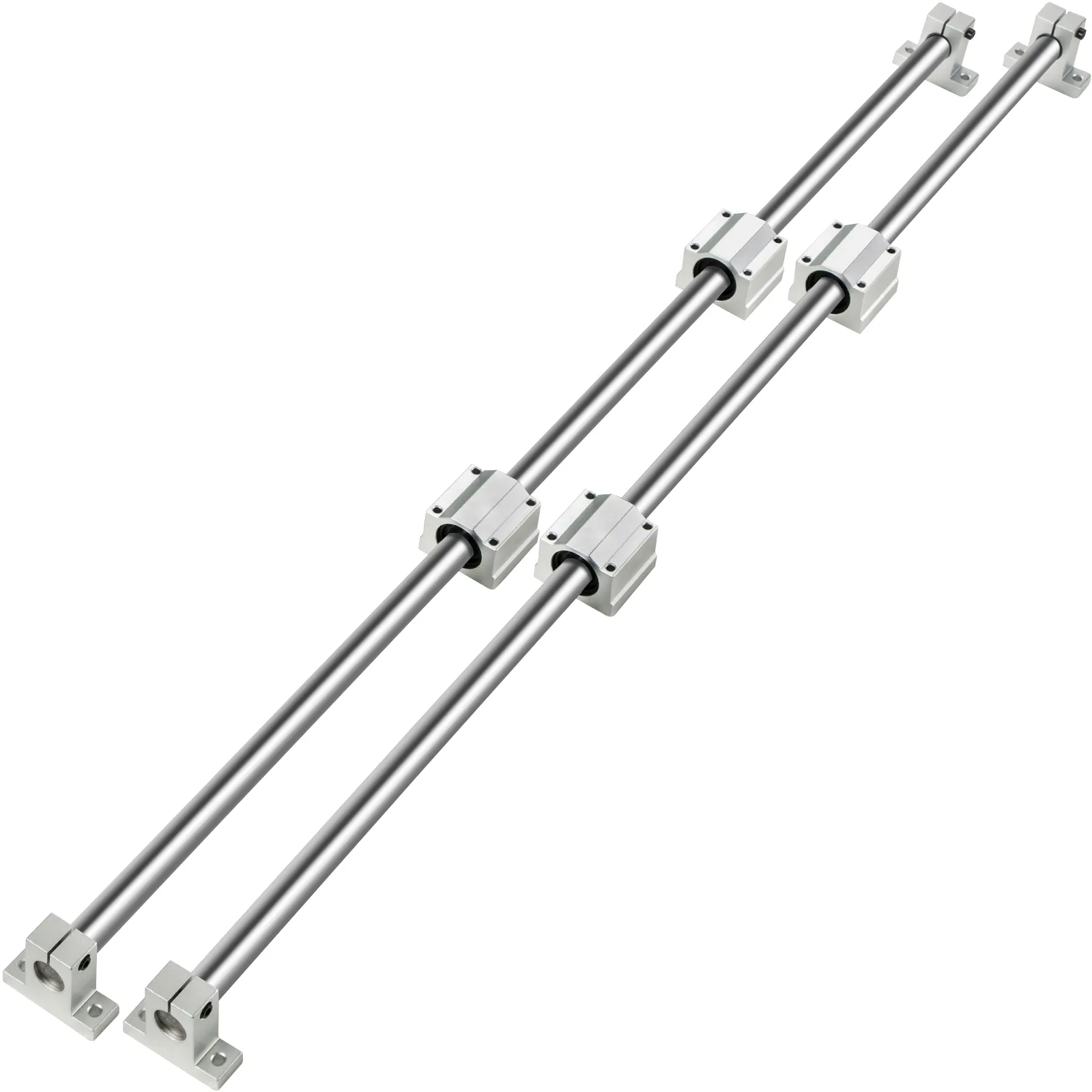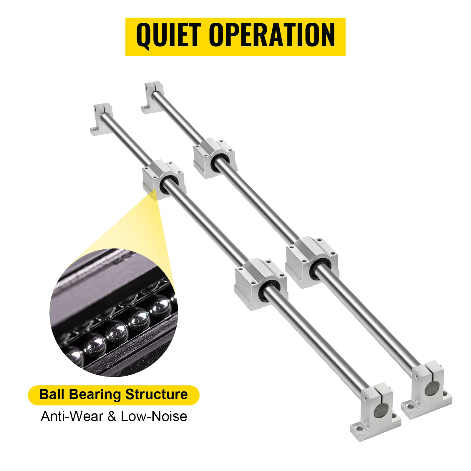 El kit de riel CNC incluye 2 ejes lineales cromados de 47,2 pulgadas / 1200 mm; 4 soportes de eje fijo SK16; 4 rodamientos de bloque de pilares SCS16UU. El eje central de acero con rodamientos es sólido y duradero, lo que hace que tenga una larga vida útil.