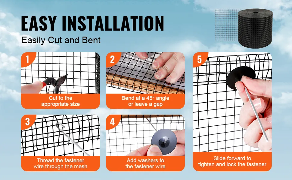 Este revestimiento de PVC muy duradero y resistente a la intemperie para la protección contra aves VEVOR garantiza una protección duradera con su PVP resistente a la oxidación. Este revestimiento garantiza que el producto dure muchos años. El revestimiento de inmersión de PV duradero ayuda a proteger contra los elementos climáticos. Evita la oxidación, lo que hace que la protección sea resistente y duradera. Esta característica es especialmente útil en áreas con condiciones climáticas adversas. Con este revestimiento, la protección contra aves se mantiene eficaz y confiable durante años. Sin embargo, también facilita la limpieza y el mantenimiento.