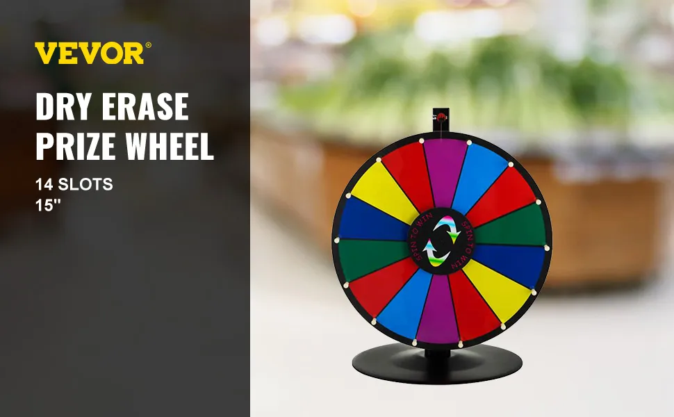Esta rueda de premios de la fortuna se ensambla con el tablero acrílico, espuma de PVC y un soporte resistente, lo que mantiene la estabilidad mientras hace un giro suave y equilibrado. Los 10 espacios de premios personalizables de esta rueda giratoria de premios permiten a los usuarios editar el texto o el logotipo; la superficie de borrado en seco es fácil de escribir y borrar. La rueda giratoria de premios puede traer diversión a las actividades navideñas, ferias comerciales, carnavales, reuniones anuales, fiestas, etc.