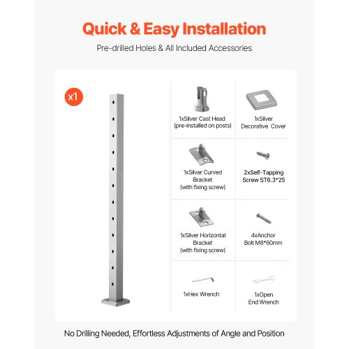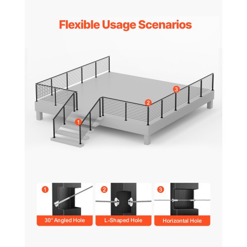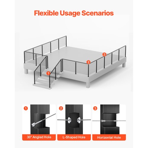 VEVOR Poste de Barandilla de Cable con Orificio Horizontal de Acero de 91,4 x 2,5 x 5 cm Acero Inoxidable SUS304 con Soporte Horizontal y Curvado, 1 Paquete, Plateado, LGZYY91.42.551C3JV0