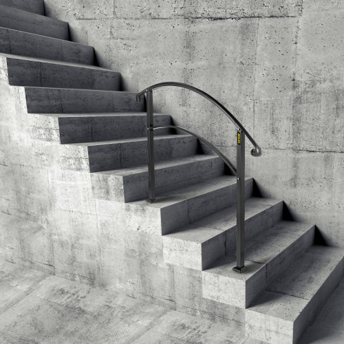 VEVOR Pasamanos Metálicos para 3 Pasos Barandilla de Escaleras de Hierro Forjado Distancia entre Postes de 63,5 cm Pasamanos de Escalones Interiores y Exteriores para Hogar, Jardín, Hotel, Negro