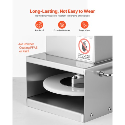 VEVOR Prensa Eléctrica para Masa de Pizza, Placa de Prensado 15 cm, Máquina de Pan de Acero Inoxidable, Espesor Ajustable, con 100 Hojas de Papel Pergamino, 240 x 250 x 330 mm, Fácil de Usar