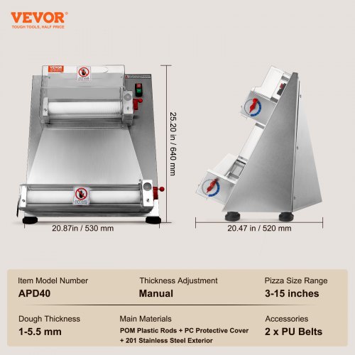VEVOR Máquina formadora de pizza Prensa de masa eléctrica comercial 7,62-38,1 cm 260 hojas por hora Laminadora de masa de pizza de acero inoxidable Espesor ajustable para pasteles Pizzerías Panaderías