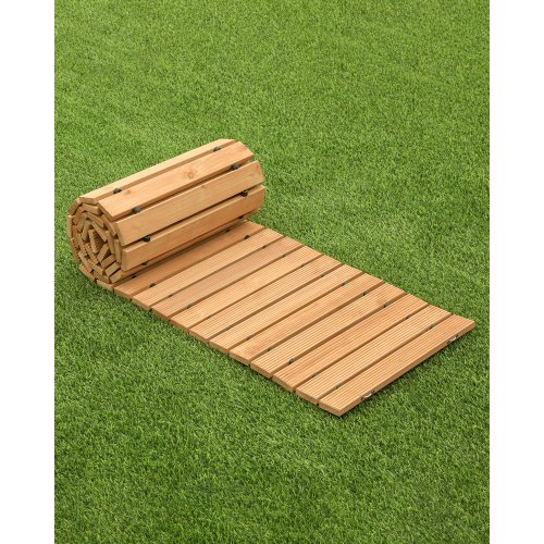 VEVOR Camino de Jardín de Madera 7,31 m x 43,2 cm, Camino de Jardín Recto Antideslizante, Camino de Exterior de Cedro Enrollable con Conexión de Cable de Acero para Jardín, Fiesta de Bodas, Patio