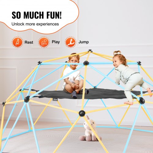 VEVOR Cúpula de Escalada 305 cm Juego de Cúpula Geométrica con 2 Pelotas, 1 Red, 1 Bomba de Aire Capacidad de Carga de 453 kg Juego de Domo de Escalada para Jardín, Parque, Exterior, Azul y Amarillo