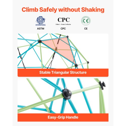 VEVOR Cúpula de Escalada 183 x 183 x 133,5 cm Juego de Cúpula Geométrica Capacidad de Carga de 270 kg para Niños de 3 a 10 Años Juego de Domo de Escalada para Jardín, Patio, Parque, Exterior