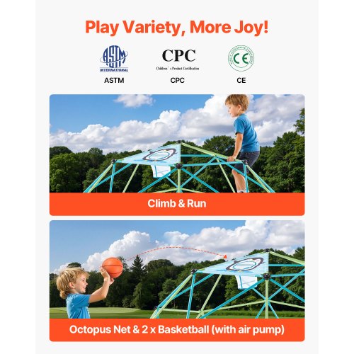 VEVOR Cúpula de Escalada 305 cm Juego de Cúpula Geométrica con 2 Pelotas, 1 Red, 1 Bomba de Aire Capacidad de Carga de 453 kg Juego de Domo de Escalada para Jardín, Parque, Exterior, Azul y Verde