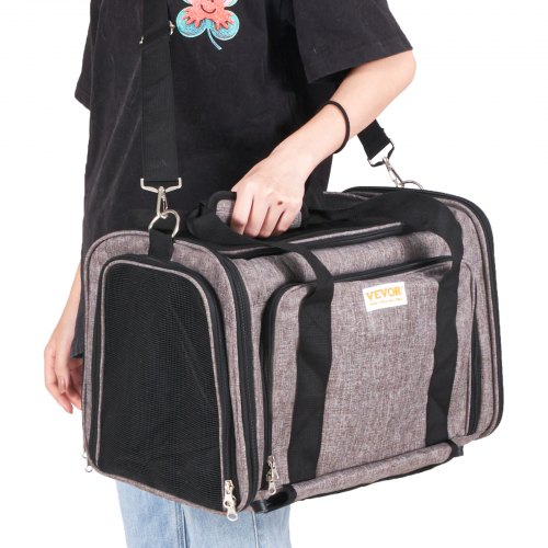 VEVOR Transportín para Mascotas con Ruedas Carga de 11,3 kg Maleta para Gatos 46x28x28 cm Transportador para Mascotas con Asa Telescópica Correa para Hombro Cremallera con Autocierre para Perros, Gris