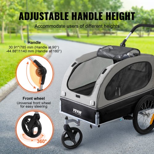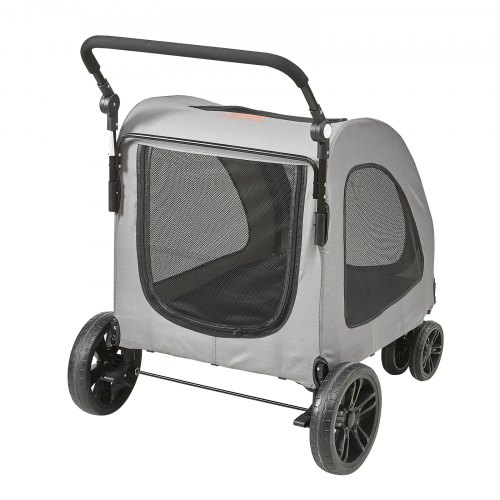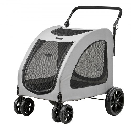 VEVOR Cochecito para Perros de 4 Ruedas Giratorias con Frenos Cochecito para Mascotas Capacidad de Carga de 73 kg Ventanas Malla Transpirable Altura Ajustable para Perros Medianos/Grandes, Gris Oscuro