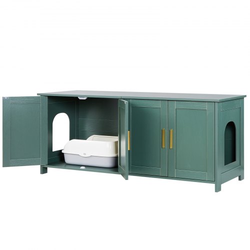 VEVOR Arenero para Gatos, 1200 x 450 x 500 mm, con 4 Puertas 2 Entradas, Mueble de Interior, Caseta de Madera, Compatible con la Mayoría de Areneros, Verde, Carga Superior 60 kg e Inferior 45 kg